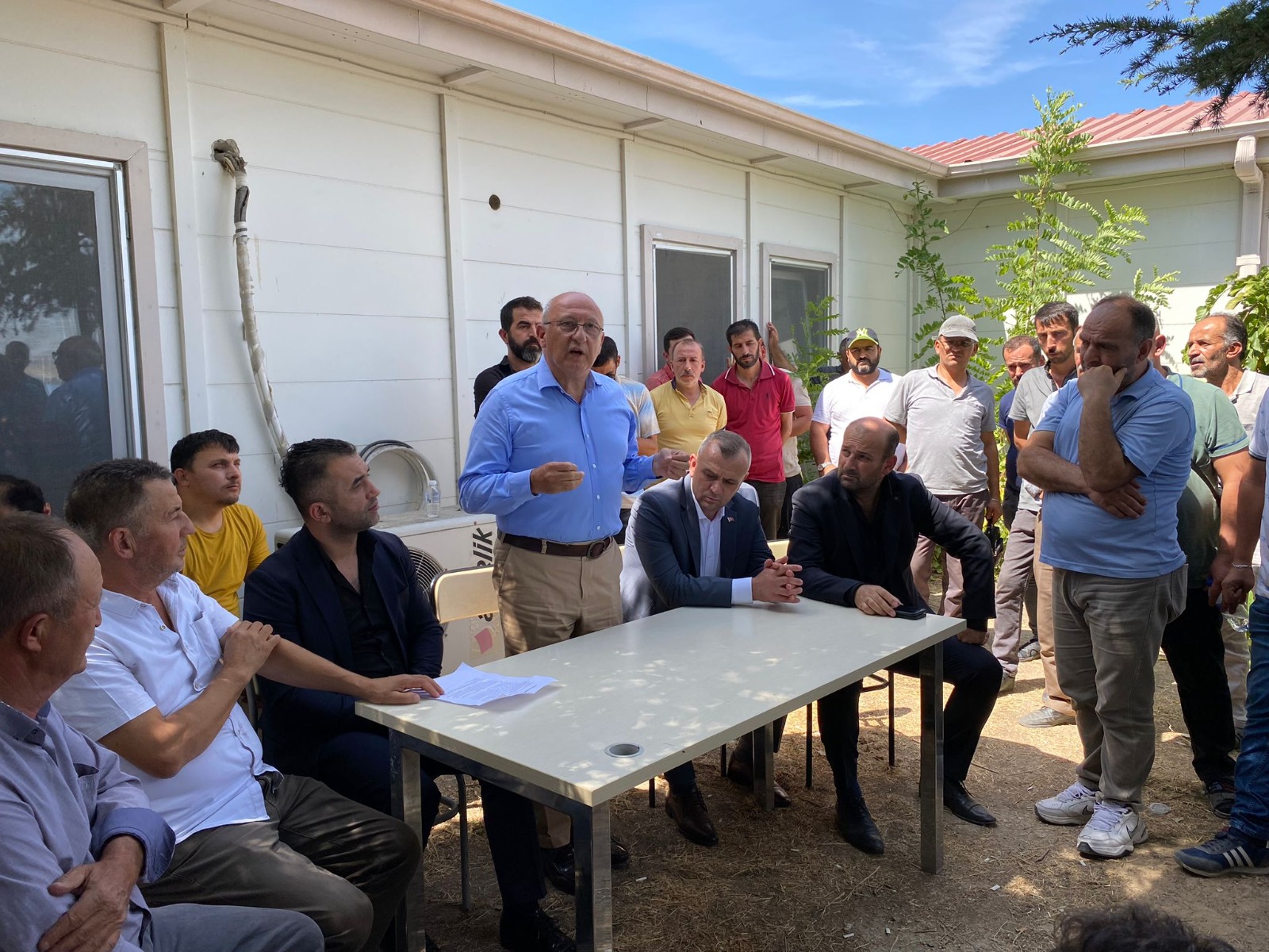 Eylemdeki işçilere dayanışma ziyaretinde bulundum. Seçime 5 gün kala Fuat Oktay ve Fatih Dönmez bu tesise gelip şov yaptılar. Tesisin yeniden üretime başlayacağını, ücretsiz izindeki işçilerin döndüğünü, yüzlerce işçiye istihdam kapısı açılacağını söyleyerek bu şirkete kefil oldular. Her ay işçi alınacak dediler. Ne için? Oy için! Peki ne oldu? İşte işçilerin durumu! Maaşlar, tazminatlar ödenmiyor, sigorta eksik yatıyor, işçinin hakkı gasp ediliyor! Ve şirketin yaşattığı bu mağduriyet karşısında kimseden ses çıkmıyor. Seçim öncesi bakan arabalarıyla gelip siyasi şov yapanlar şimdi nerede?”