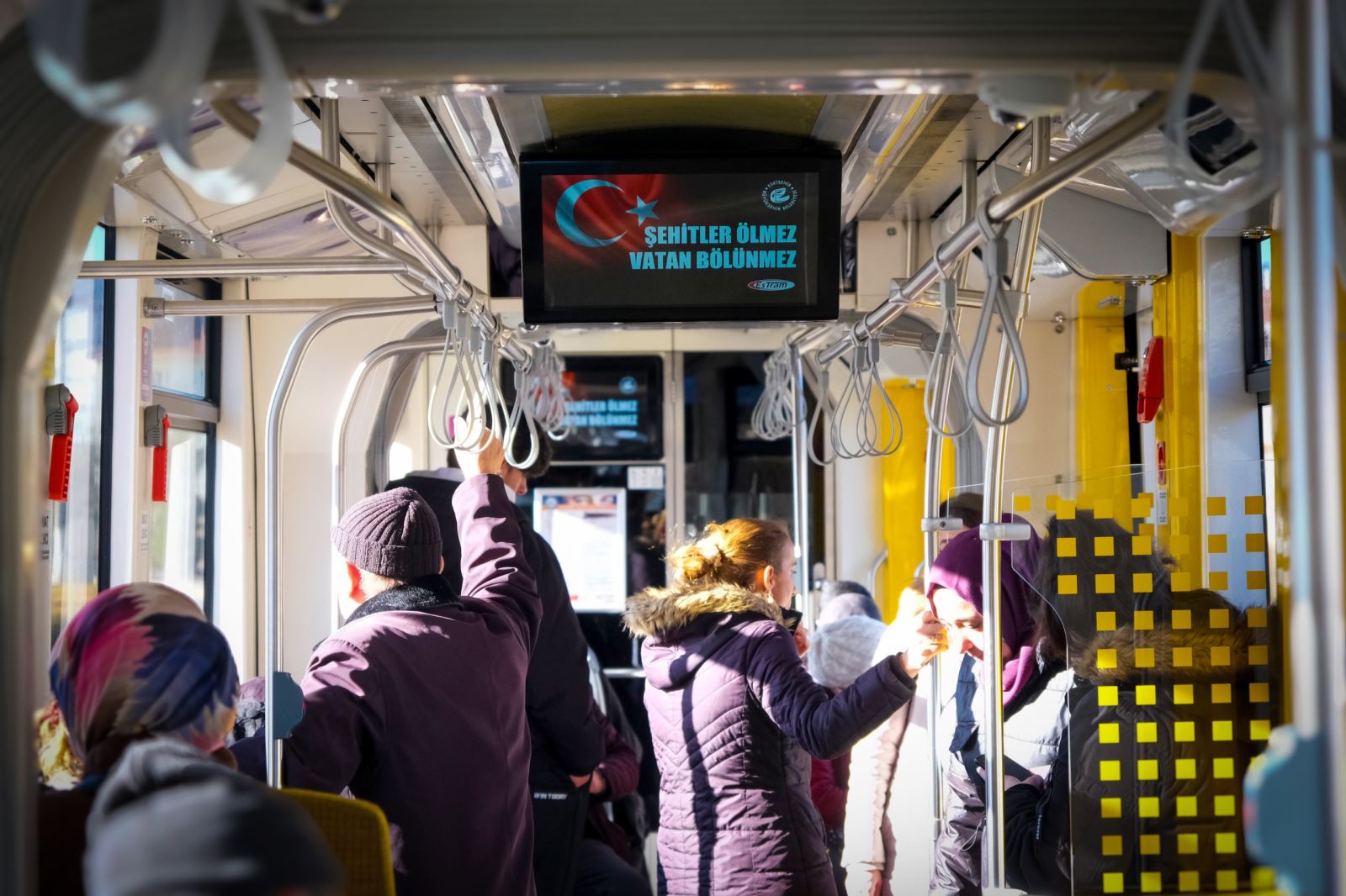 Eskişehir Büyükşehir Belediyesi tarafından 22-23 Aralık tarihlerinde bölücü terör örgütü mensuplarınca şehit edilen askerlerimiz için tramvayların bilgilendirme ekranları ve led ekranlara, “