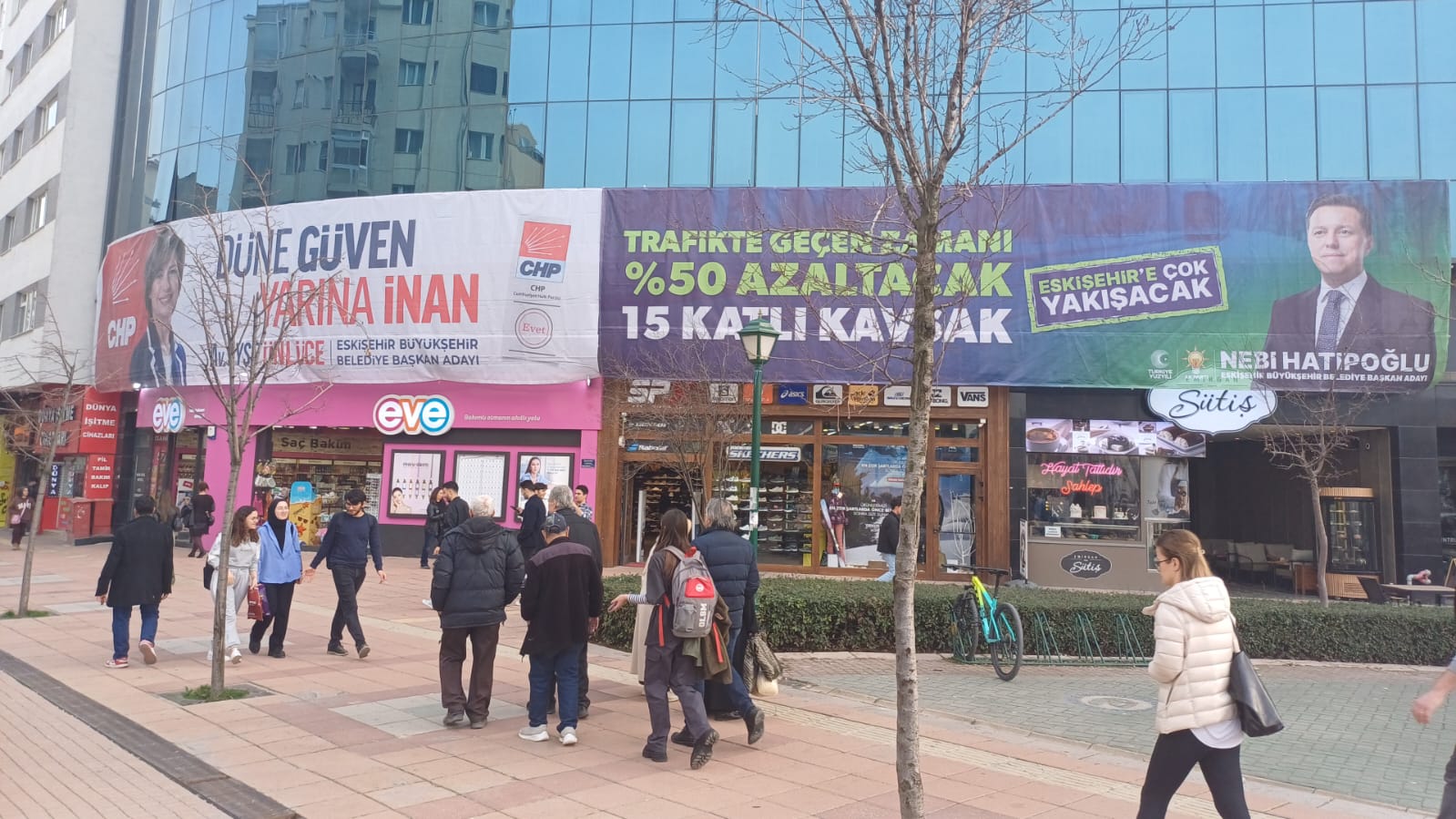 CHP adayı Ayşe Ünlüce’nin pankartı ise “