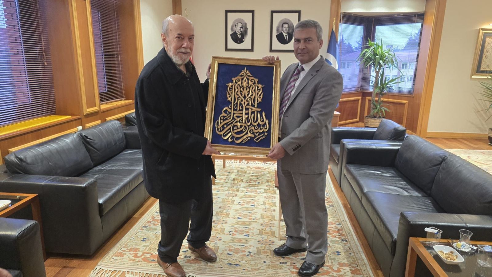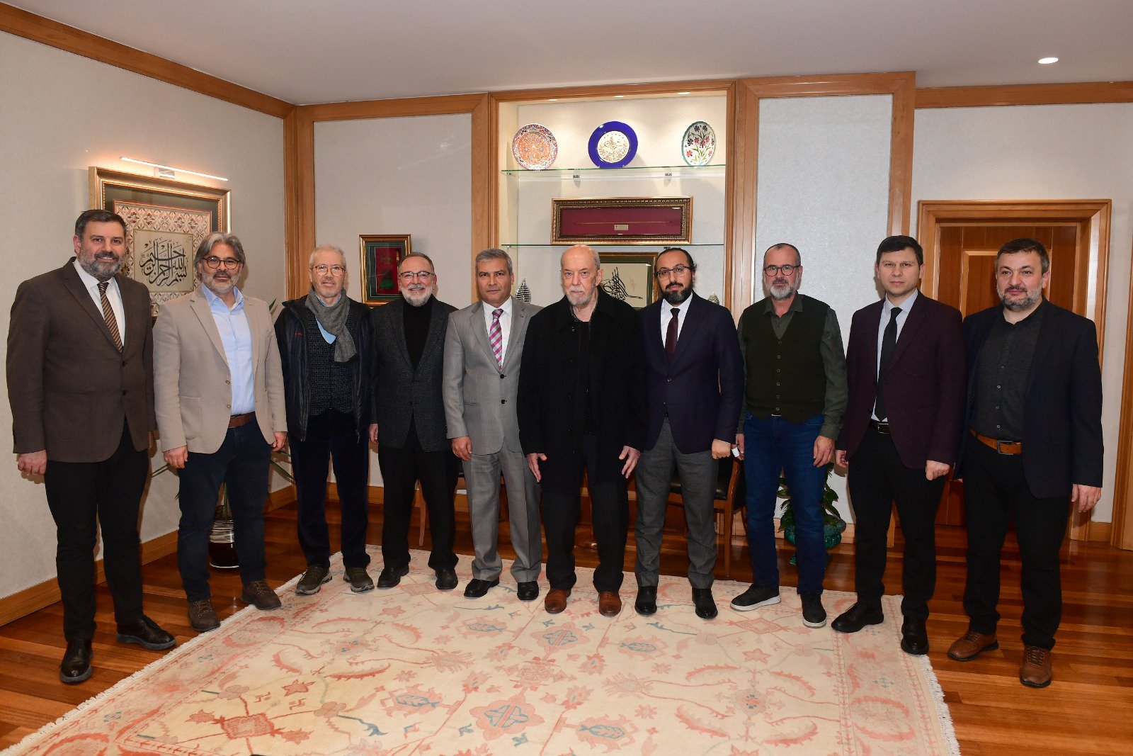Fotoğraf sıradan bir ziyaret fotoğrafı! Birlik Vakfı yönetimi yeni rektör Yusuf Adıgüzel’i ziyaret ediyor. Rektör bey bu ziyaret nedeniyle eleştiriyor…