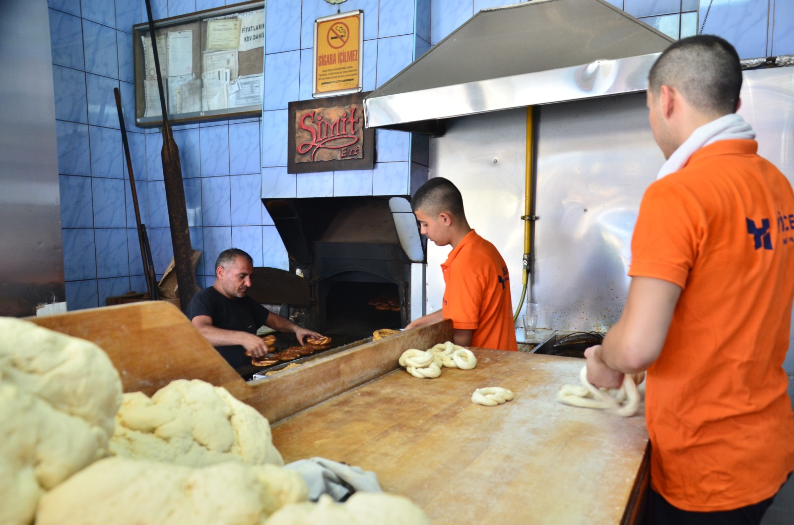 Bu mesleğin sosyal hayatı yoktur. Gece 03.00’te kalkarız. Gelir burada 04.00’te iş başı yaparız. Saat 15.00’e kadar da devam ederiz yani. 04.00’te burada oluyoruz, hazırlıklara başlıyoruz. Fırın hazırlanıyor, hamur hazırlanıyor, bütün malzemeler hazırlanıyor. 05.00’te simidimiz hazır oluyor. O saatte gelip simit alan oluyor. Toptancılar da gelip alıyor. Biz hafta sonu ve bayramlar dahil hiç kapanmıyoruz. Bizi sıcak da zorlar, soğuk da zorlar. Cenazen olduğu zaman cenazene bile doğru dürüst katılamıyorsun. Sosyal hayatın bitiyor. Bu meslek böyle bir meslek ama güzel bir meslek…
