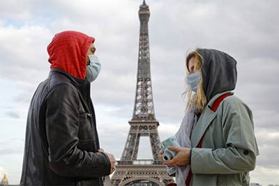 COVID-19 salgını sonrası Fransa’nın başkenti Paris’teki Eyfel Kulesi ve birbirine aşık çift…