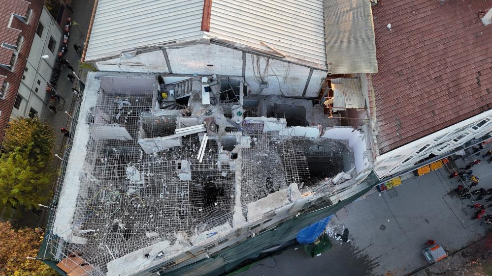 Adalar’da Şair Fuzuli Caddesi ile Adalar’ın kesiştiği noktadaki bina yıkılırken, göçükler oluştu…