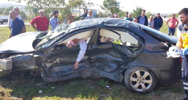 Bursa-İzmir yolunun Güllüce kavşağındaki kazada can pazarı yaşandı.Gelin arabası, sürücüsü öğrenilemeyen 16 GD 231 plakalı otomobille çarpışırken, araçlar demir yığınına döndü.