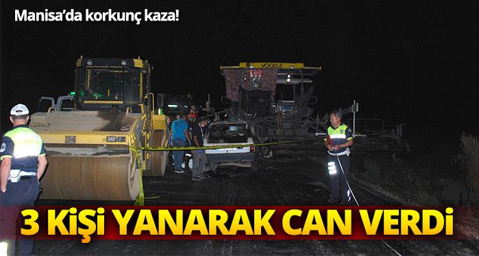 Bir otomobilin kapalı yoldaki asfalt serme makinesine çarpmasıyla feci görüntüler ortaya çıktı. Alev topuna dönen araçta ölen üç kişinin kimliği belirlenemedi.