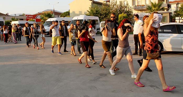 Muğla'nın Fethiye ilçesindeki bazı masaj salonlarında "Kankanı da al gel" şifresi kullanılarak fuhuşa aracılık ve yer temini ettikleri iddiasıyla 11'i kadın 20 kişi polis ekiplerince gözaltına alındı.