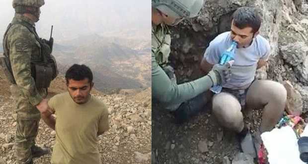Operasyonlar sırasında yaralanan 1 PKK'lı terörist mağarada saklanırken güvenlik güçleri tarafından yakalandı. Asker yaralı olarak ele geçirdiği teröriste elleriyle su içirdi.