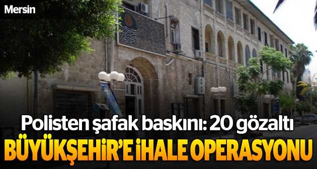 MERSİN Büyükşehir Belediyesi'ne düzenlenen ihale operasyonunda 20 çalışan gözaltına alındı.
