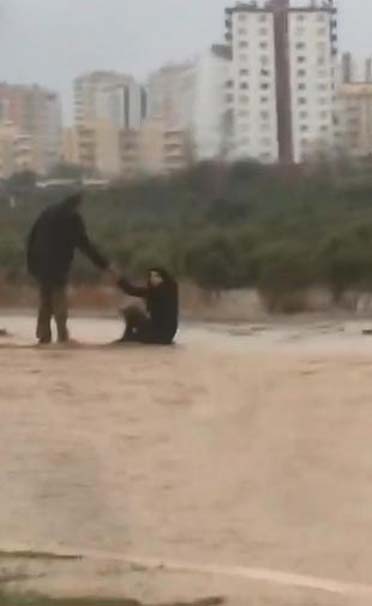 Yağış nedeniyle okullar bir gün tatil edildi. Belediye de vatandaşları uyararak, "Gerekmedikçe dışarı çıkılmaması" uyarısında bulundu. Doğan Haber Ajansı'nın kaydettiği görüntüler Mersin'deki korkunç anları gözler önüne serdi. Görüntülerde, karşıdan karşıya geçmeye çalışan baba ve kızının sel sularına kapıldığı görülüyor.