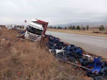 Videoyu Aç Meyve Yüklü Tır Kaza Yaptı: 1 Yaralı