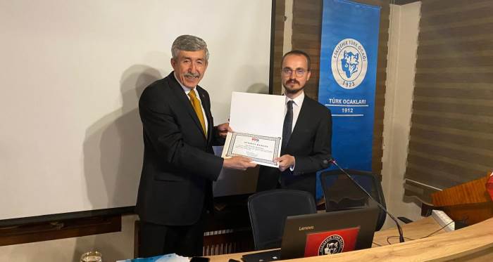 Konuklar tarafından ilgiyle takip edilen konuşmanın sonunda konuşmacı çok sayıda soruları cevaplandırdı. Eskişehir Türk Ocağı Şube Başkanı Prof. Dr. Nedim Ünal’ın konuşmacıya şükran beratı takdimi ile program sona erdi.