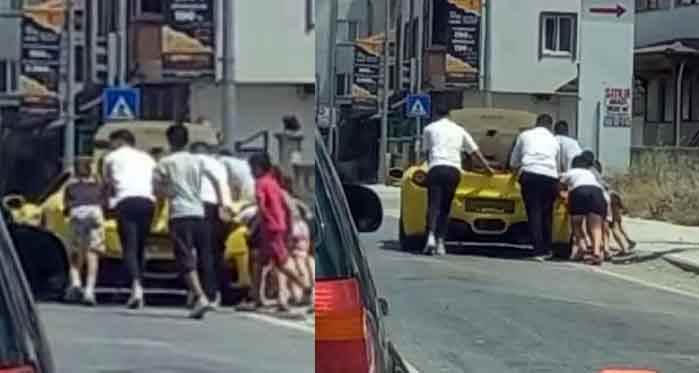 Sakarya’nın Sapanca ilçesinde milyonluk ultra lüks otomobil Ferrari arıza yaparak yolda kaldı. Vatandaşlar ise yolda kalan aracı ittirerek çalıştırmaya çalıştı. O anlar kayıt altına alındı.