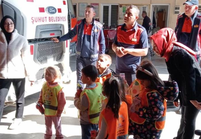 Şuhut İtfaiye Amirliği yetkilileri, “Geleceğimizin güvencesi olan yavrularımıza ve değerli öğretmenlerimize nazik ziyaretleri için teşekkür ediyoruz. Bu tür buluşmalar çocuklarımızın bilinçlenmesine katkı sağlıyor” ifadelerini kullandı.
