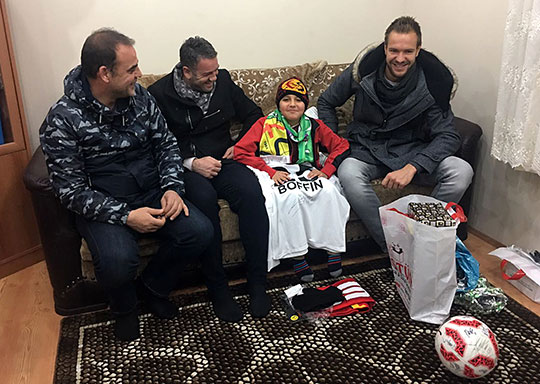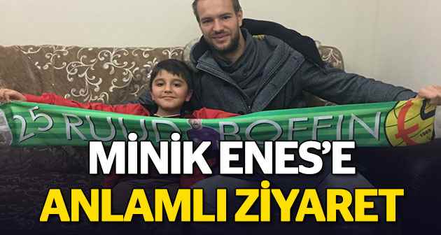 Mağlubiyetle sonuçlanan mücadele sonunda takıma uğur getirmediğini düşündüğü için fazlasıyla üzülmüştü. Bunu öğrenen başarılı file bekçisi Boffin minik Enes'i evinde ziyaret ederek hem teselli etti, hem de şampiyonluk sözü verdi. Yardımcı antrenör İlhan Var, kaleci antrenorü Mehmet Tezcan ve Asbaşkan Yasin Özkaya'nın da yer aldığı buluşmada, Enes'e içinde tüm takımın imzaladığı forması da olan çeşitli hediyeler de götüren Ruud Boffin, minik Enes'le şampiyonluk pozu vermeyi de ihmal etmedi. Enes keyifli sohbetin ardından bu sürprizi kendisine hazırlayan Sosyal Yardımlaşma ve Dayanışma Vakfı Müdürü ve Eskişehirspor As Başkanı Yasin Özkaya abisi ve hayranı olduğu başarılı kaleci Ruud Boffin'e teşekkür etti. Biz de duyarlı davranışı ve takım için ortaya koyduğu büyük yüreğini hayranlarına da açtığı için başarılı file bekçimize ve değerli antrenörlerimize çok teşekkür ediyoruz.