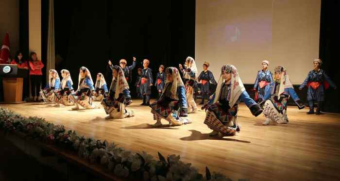 Etkinlikte Adıyaman, Artvin gibi pek çok yörenin halk oyunlarını sergileyen minikler açtıkları Atatürk bayrağı ile de ayakta alkışlandı.