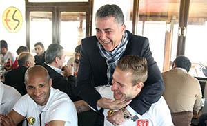 Bugün Elazığspor ile kritik bir karşılaşmaya çıkacak olan Eskişehirspor, dün moral yemeğinde bir araya geldi. Başta futbolcular olmak üzere birçok Eskişehirspor yönetimi bu moral yemeğinde ilgi gösterdi. Hayrettin Karaca Parkı'nda yer alan Kocatepe Kahve Evi'nde gerçekleşen yemekte, yönetim kurulu üyelerimiz ve oyuncularımız arasında samimi sohbetler dikkatlerden kaçmadı. Yemeğin ardından Hoşcan ve Sağlam yan yana gelerek fotoğraf çekindi. Her iki ismin verdiği bu poz, aralarında soğuk rüzgarların estiği haberlerinin asılsız olduğunu gösterdi.