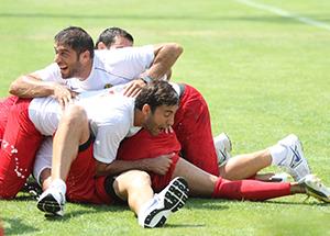 Eskişehirspor’un yoğun geçen antrenmanları bir o kadar da neşeli geçiyor. Sağlam’ın antrenmandaki uygulamalarını eksiksiz yerine getirmek için çabalayan Siyah-Kırmızılı futbolcular, antrenman sonrası ise neşeli görüntülerin ortaya çıkmasına neden oluyorlar. Dün yapılan antrenman sonrası futbolcular sevinç yumağı oldu. (SS)