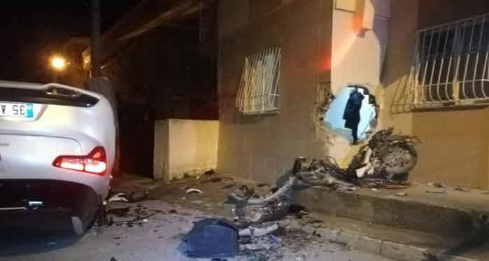 İzmir’in Buca ilçesinde, motosikleti çalınan iş yeri sahibi ve çalışanı ile hırsızlık şüphelisi arasında yaşanan film sahnelerini aratmayan kovalamacada, iş yeri sahibi otomobille motosiklete çarptı. Savrulan motosiklet bir evin duvarını yıkarken, hırsızlık zanlısı öldü, 2 kişi ise yaralandı.