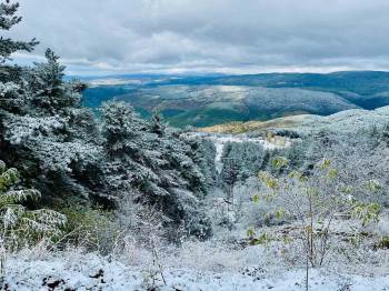 Kütahya’nın Gediz ilçesinde hafta sonunda yüksek kesimlerde etkili olan kar yağışı sonrasında Murat Dağında kartpostallık görüntülerin oluşmasına neden oldu.