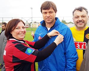 Ziraat Türkiye Kupası finalinde Galatasaray ile karşılaşacak olan Eskişehirsporlu futbolculara Bahçelievler Mahallesi sakinleri sürpriz ziyarette bulundu. Mahallenin kadın muhtarı Sülbiye Bilen önderliğinde Eskişehirspor antrenmanını izleyen mahalle sakinleri, antrenman sonrası başta Ertuğrul Sağlam olmak üzere tüm futbolculara "Nazar Boncuğu" taktı. Mahalle sakinleri daha sonra futbolculara baklava ikramında bulundu. (Spor Servisi)