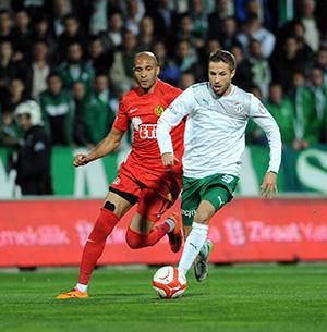 Eskişehirspor’un Senegalli oyuncusu Diomansy Kamara dün Bursaspor ile oynanan karşılaşmada saç baş yoldurdu. Maçın 18’inci dakikasında rakip Bursa’nın kazandığı köşe vuruşunda topu uzaklaştırmak yerine kalesine yollayan Kamara, Bursaspor’u 1-0 öne geçirdi. Bursaspor karşısında etkisiz bir performans sergileyen Senegalli oyuncu asıl bombayı 51’inci dakikada patlattı. Sağ kanattan geliştirilen atakta Sezgin’in ortasında topla buluşan Kamara meşin yuvarlığa çizgide etkisiz bir vuruş yaptı ve sahalarda ender görülen bir gol kaçırdı.