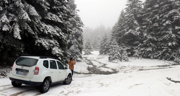 Bolu'ya yaklaşık 13 kilometre uzaklıkta bulunan Gölcük Tabiat Parkı'nın üst kesimleri ile Aladağ Yaylası bölgesinde dün başlayan sağanak, yerini gece kar yağışına bıraktı. Kar kalınlığının yer yer yaklaşık 5 santimetreye ulaştığı bölgede yağış aralıklarla devam ediyor. Gölcük Tabiat Parkı'nın yüksek kesimlerinde kar yağışı etkili olurken, gölde ise ağaçların çiçek açmasıyla iki mevsim bir arada yaşanıyor.