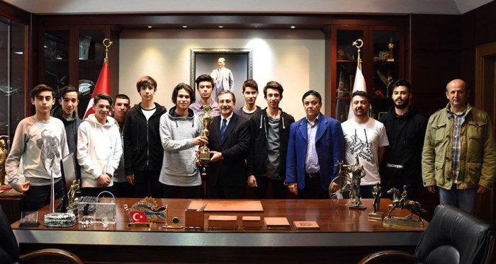 Takım Antrenörü Göksel İzcioğlu ise; “Biz Eskişehir Şimşekler Takımı’yız. Şimşekler takımı Tepebaşı Belediyesi’nin yaz okulu kapsamında oluşan bir takım. Bu genç takımla Antalya’da düzenlenen uluslararası şampiyonaya gittik. Orada Türkiye ikincisi olduk. Başkanımıza orada kazandığımız kupayı hediye etmek istiyoruz” şeklinde konuştu.