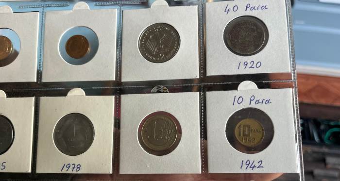 Eskişehir’in Sivrihisar içesinde para koleksiyonu yapan Oğuz Ekici’nin elinde, Âşık Veysel Şatıroğlu’nun seslendirdiği “Güzelliğin On Para Etmez” türküsünde geçen 10 para yer alıyor.