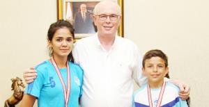 Trabzon ve Çanakkale’de şampiyonlara katılan Kazım Taha Ülgü ve Hatice Çağlayan  Başkan Kurt’u ziyaret etti. Türkiye’nin farklı illerinden gelen sporcuların katıldığı zorlu turnuvada büyük başarı sağlayarak Türkiye 2’ncisi olan Hatice Çağlayan, Milli Takım Dünya ve Avrupa seçmelerine katılmaya hazırlanıyor. Kazım Taha Ülgü ise Rumi Çocuk Oyunlarına katılmaya hak kazandı. Başkan Kurt, her iki sporcuyu tebrik ederek her zaman yanlarında olacaklarını söyledi.