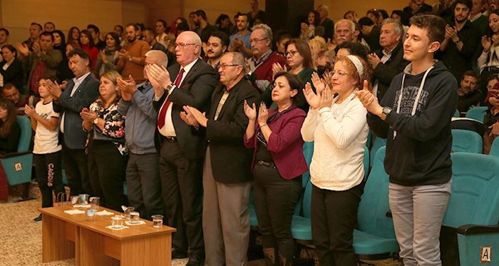 Başkan Kurt, konuşmasının ardından, Odunpazarı Belediyesi Tiyatro Müdürü Sevil Özgür’ün eşi Sevilay Özgür’e, Sevil Özgür’ün belediye tiyatrosuna sağladığı katkılardan dolayı anı plaketi verdi.