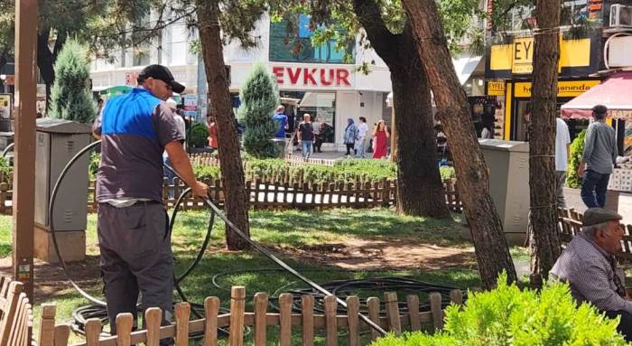 Özellikle çocuk parkları, yürüyüş alanları ve refüjlerdeki çimler ve bitkiler düzenli olarak sulanarak canlı tutuluyor.