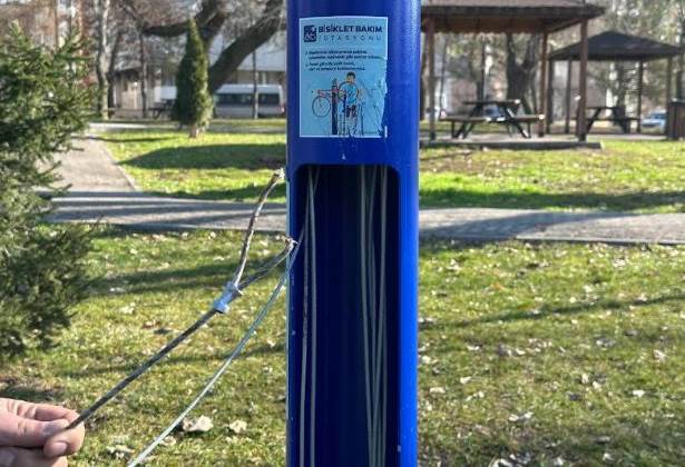 Odunpazarı Belediyesi tarafından karbon ayak izini azaltmak ve bisiklet kullanımını teşvik etmek amacıyla Kanlıkavak Parkı’na kurulan Bisiklet Tamir ve Pompa İstasyonu, kimliği belirsiz kişiler tarafından bir kez daha hedef alındı. Çevre dostu ulaşım projeleri kapsamında bisiklet kullanıcılarının acil ihtiyaçlarını karşılamak için hizmete sunulan istasyon, geçtiğimiz günlerde pompası kırıldıktan sonra son saldırıda malzemeleri çalındı.