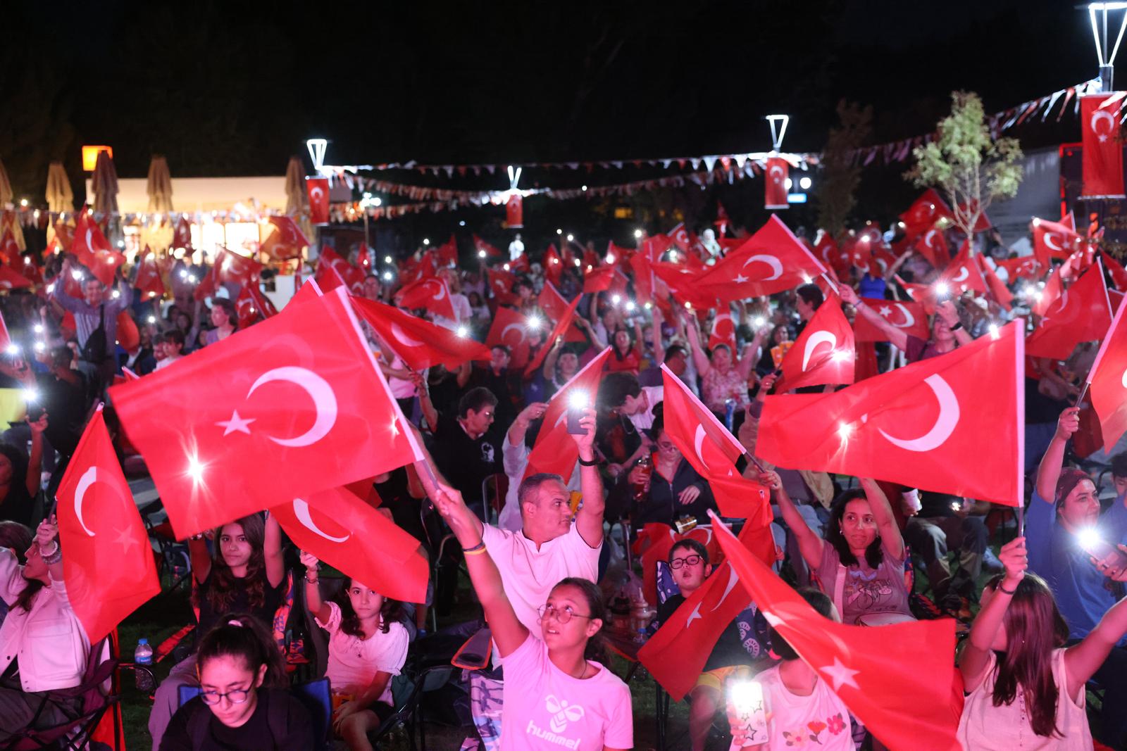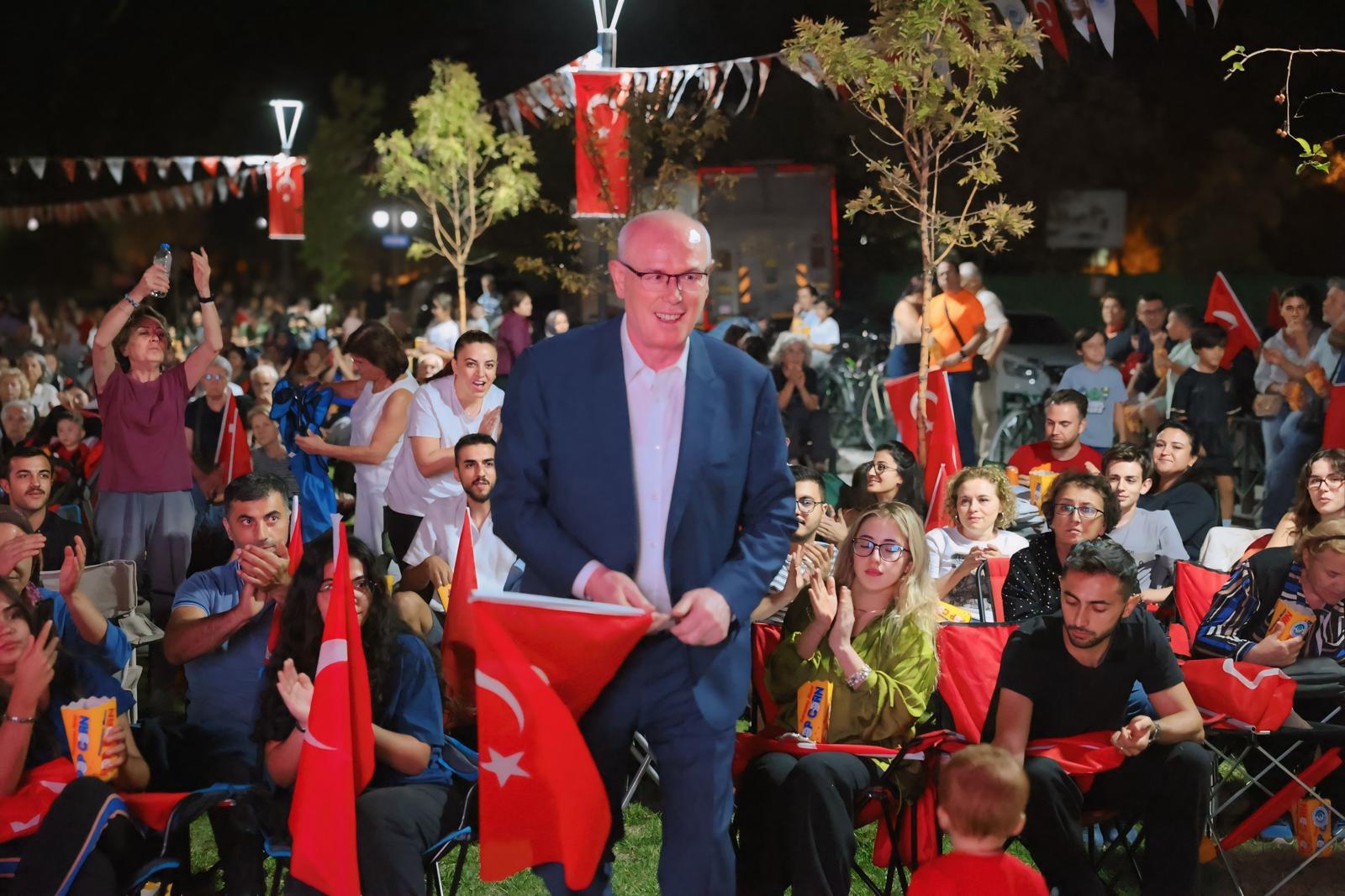 Vatandaşlar, hem milli bayramın anlamını yad ederken hem de açık havada sinema keyfiyle keyifli bir akşam geçirdi.
