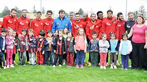 Saygı duruşunun ardından yan sahaya geçen Siyah-Kırmızılı ekip, antrenmanı ziyarete gelen öğrencilerle bir araya geldi. Çeşitli okullardan gelen öğrencilerle yakından ilgilenen Eskişehirspor Teknik Direktörü Ertuğrul Sağlam, hemen hemen tüm öğrencilerle hatıra fotoğrafı çektirdi. Miniklerin Sağlam’a gösterdikleri bu ilgi renkli görüntülerin ortaya çıkmasına neden oldu.
