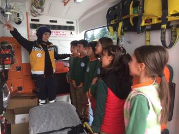 Etkinlik kapsamında ambulans ziyaret edilerek öğrencilere ambulans ekibinin tanıtımı, ambulansın iç donanımı hakkında da bilgiler verildi.