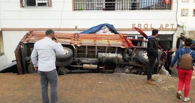 Bahçesine kamyon devrilen ev sahibi Şeyhmus Toprak, “Komşularımızdan biri evini taşımak için kamyonette yüklüyordu. Kamyonetin nasıl geldiğini tam göremedik. Bir anda yüksek bir patlama gibi ses geldi. Araba çalışmıyordu. Çalışmadan yol aldı. Ev bana ait. Çok şükür bizde bir yaralanma durumu yok” diye konuştu.