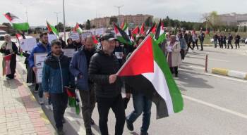 Kütahya Dumlupınar Üniversitesine (DPÜ) bağlı öğrenci toplulukları tarafından ortaklaşa düzenlenen yürüyüşte Filistin’de Ramazan ayında dahi durmayan şiddet ve zulümler sessiz yürüyüşle protesto edildi.