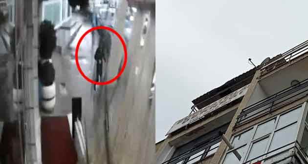 Ankara’da bir vatandaş ile köpek, fırtınadan dolayı kopan balkon çatısının altında kalmaktan son anda kurtuldu. Korku dolu o anlar güvenlik kamerasına yansıdı.