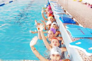 Sıcak yaz günlerinde havuzda serinleyen minik yüzücüler, aynı zamanda tecrübeli antrenörlerden yüzmeyi öğreniyorlar. Yüzme yaz okulunda eğitim gören y