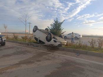 Afyonkarahisar’Da Önünde Seyreden Araca Çarptıktan Sonra Orta Refüje Girip Takla Atan Otomobilin Sürücüsü Yaralandı.