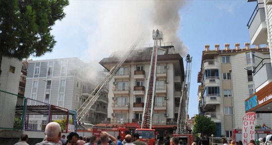 Antalya'nın Alanya ilçesinde 5 katlı bir otelin çatı katında yangın çıktı. İtfaiye ekiplerinin müdahalesiyle yaklaşık bir saatte tamamen söndürülen yangında ölen ya da yaralanan olmazken otelde bulunan turistler panik içerisinde kendilerini dışarı attı.
