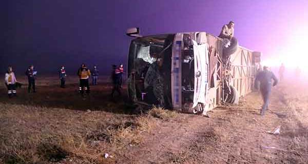 Kaza, saat 05.30 sıralarında Aksaray - Ankara karayolunun 35. kilometresinde meydana geldi. Edinilen bilgiye göre, İstanbul Mersin seferini yapan Muzaffer İ. (62) idaresindeki 33 DK 060 plakalı yolcu otobüsü, Aksaray’a 35 kilometre kala sisli havada sürücüsünün direksiyon hakimiyetini kaybetmesi sonucu kontrolden çıkarak şarampole devrildi. 8’i çocuk 48 yolcu ve 4 mürettebat olmak üzere toplam 52 kişinin bulunduğu otobüste 1 kişi olay yerinde hayatını kaybederken, 51 kişi de yaralandı. Kaza ihbarı üzerine olay yerine çok sayıda ambulans ve kurtarma ekibi sevk edildi. Aksaray Acil Afet Durum (AFAD) Müdürlüğü, Ulusal Medikal Kurtarma (UMKE) ekibi, Aksaray Belediyesi İtfaiye Müdürlüğü ekipleri ve 112 Acil Yardım ekipleri kısa sürede olay yerine intikal ederek kazaya müdahale etti. Polis ve jandarma ekiplerinin karayolunda geniş güvenlik önlemleri aldığı kazada yaralılar kurtarma ekipleri tarafından ambulanslara taşındı. Aksaray Şoförler Cemiyeti kurtarma aracı ise devrilen otobüsü kaldırırken, kurtarma ekipleri otobüs altında arama çalışması yaptı. Yaralılar Aksaray Üniversitesi Eğitim ve Araştırma Hastanesi başta olmak üzere kentte bulunan özel hastanelere kaldırılarak tedavi altına alınırken, 9 yaralının durumunun ağır olduğu öğrenildi. Olay yerinde hayatını kaybeden bir yolcunun henüz kimliği belirlenemezken, kazayla ilgili soruşturma başlatıldı.