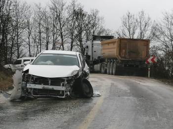 Videoyu Aç Otomobil İle Kamyon Kafa Kafaya Çarpıştı; 1 Kişi Yaralandı