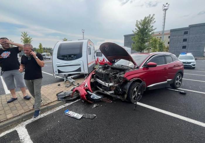 Videoyu Aç Otomobil karavana çarparak kaza yaptı