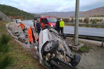Edinilen bilgilere göre, Bilecik’ten Bozüyük istikametine seyir halindeki 42 AGL 046 plakalı otomobil sürücü Recep A., Bozüyük Çevre Yolu Bursa Kavşağına geldiği esnada havanında yağışlı olması sebebiyle aracının direksiyon hakimiyeti kaybetti. Kontrolden çıkan araç, yolun sağ tarafındaki su kanalına devrildi. Kazada, otomobil sürücüsü ile birlikte araç içinde yolcu olarak bulunan Fatma A. yaralanıdı. Yaralılar olay yerine gelen 112 Acil Sağlık ekiplerince yapılan ilk müdahalenin ardından Bozüyük Devlet Hastanesine kaldırıldı. Yaralıların sağlık durumlarının iyi olduğu belirtilirken kaza ile ilgili soruşturma başlatıldı.