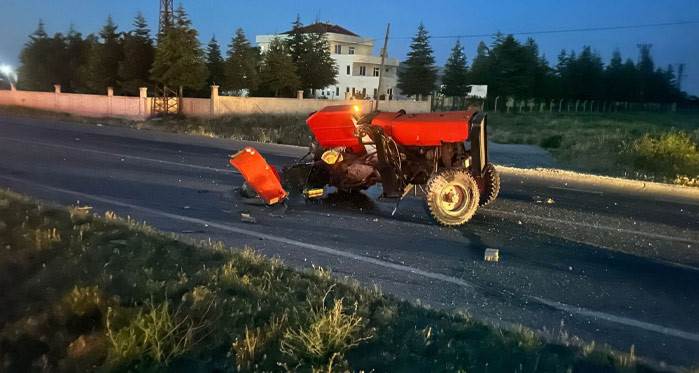 Afyonkarahisar'da otomobilin çarptığı traktör 3 parçaya bölünürken, kazada 2 kişi yaralandı. Kaza sonrası traktörün parçalanmış hali ise görenleri şaşırttı. Kaza, Afyonkarahisar- Eskişehir karayolunda dün gece saat 21.00 sıralarında meydana geldi. Edinilen bilgilere göre, A.D. idaresindeki 06 BVU 298 plakalı otomobil, S.Ş. idaresindeki traktöre çarptı. Çarpanın etkisi ile traktör 3 parçaya bölündü. Araç içerisindeki sürücü A.D ile araç içerisinde yolcu olarak bulunan S.Y. yaralandı. Bölgeye sevk edilen sağlık ekipleri yaralıları hastaneye sevk etti. Kazayla ilgili soruşturma başlatıldı.