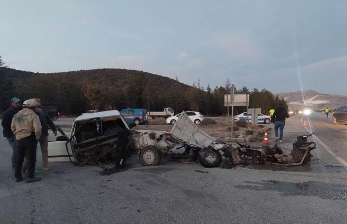 Burdur'un Karamanlı ilçesinde meydana gelen kazada iki otomobil çarpıştı, 6 kişi yaralandı; Tofaş otomobil kazanın etkisiyle ikiye bölündü.