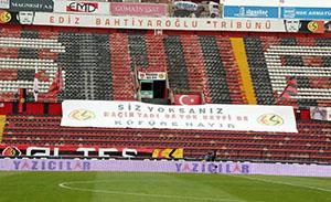 Dün oynanan Eskişehirspor-Kayseri Erciyesspor maçında açık tribünde açılan pankart oldukça dikkat çekti. Bu sezon 2’nci defa küfürlü ve kötü tezahürat nedeniyle canı yanan Eskişehirspor yönetimi ‘Siz yoksanız maçın tadı da yok keyfi de küfüre hayır’ pankartı açtı. Taraftarından yoksun olarak mücadele eden Eskişehirspor 1 hafta sonra ligde oynanacak olan Kayserispor maçını da cezası nedeniyle yine seyircisiz oynayacak.