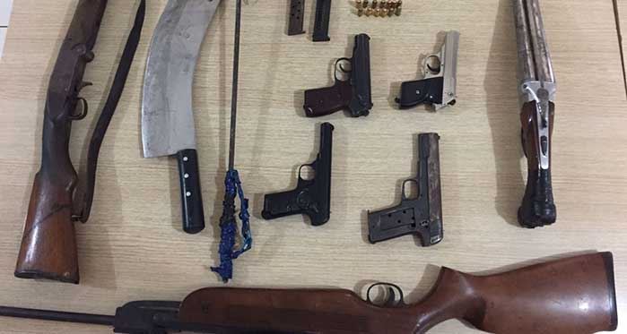 Evde yapılan aramalarda, 4 tabanca, 3 tüfek, 1 pala, 1 işkence topuzu ve çok sayıda mermi ele geçirildi. Y.K. ekipler tarafından gözaltına alınırken, gerekli tahkikat devam ediyor.