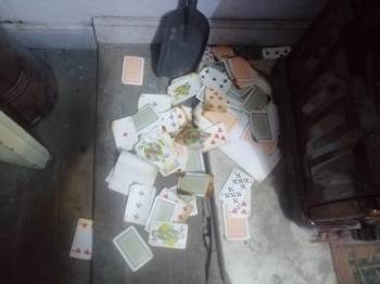 İkamette yapılan aramada, soba içerisinde kısmen yanmış iki adet yazboz kağıdı, soba içerisinden çıkan kısmen yanmış 100 adet iskambil kağıdı, 1 adet üzeri yazılı yazboz koçanı, 1 adet adisyon koçanı, 102 adet iskambil kağıdı, 9 deste açılmamış iskambil kağıdı ele geçirildi.